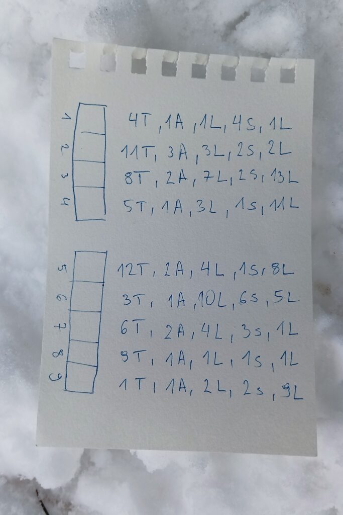 Dlatego 4T, 1A, 1L, 4S, 1L, to tablica nr 4 (4T), pierwszy akapit (1A), pierwsza linia (1L) w tym akapicie, czwarte słowo (4S) w tej linii i pierwsza litera (1L) tego słowa.