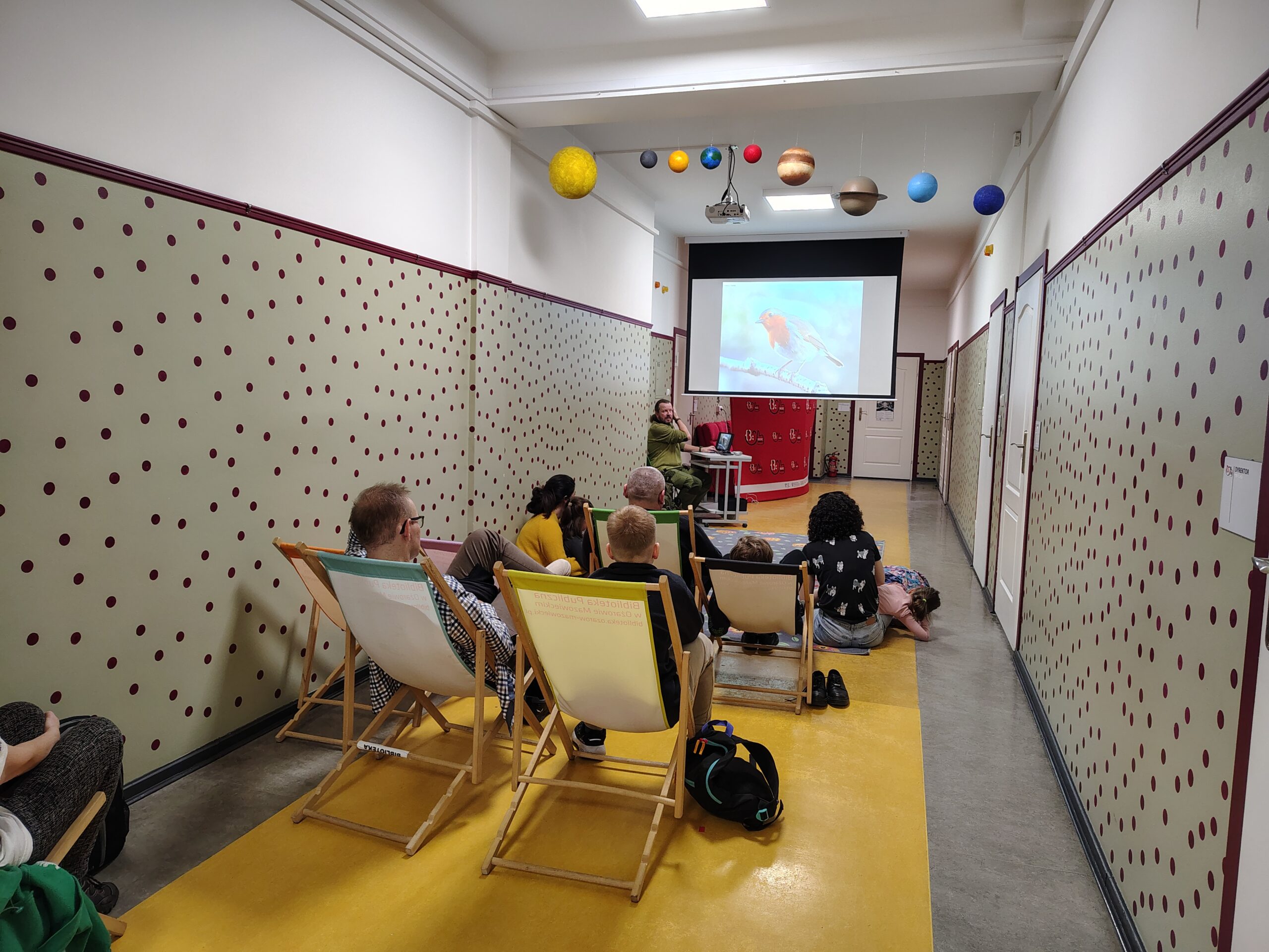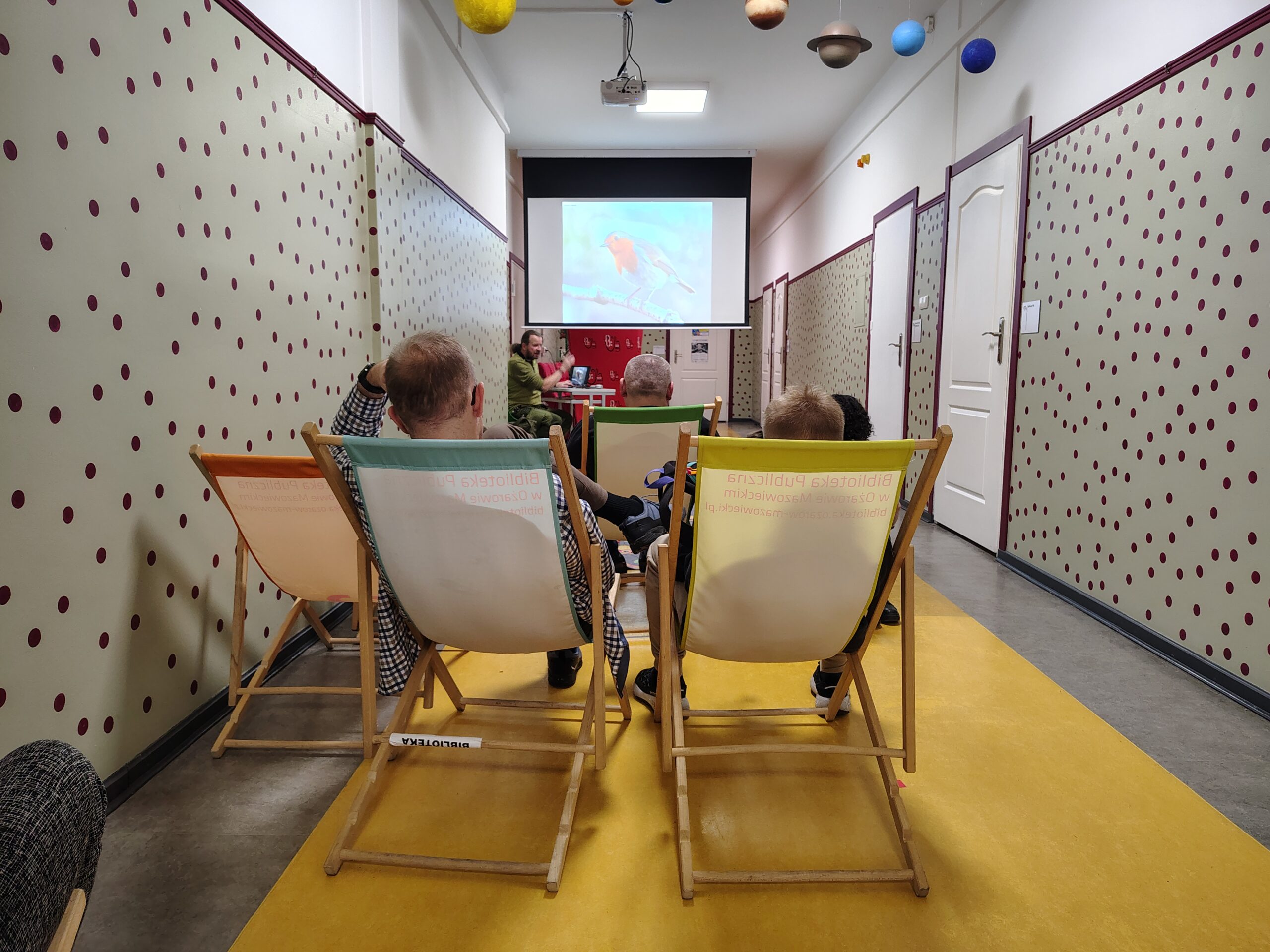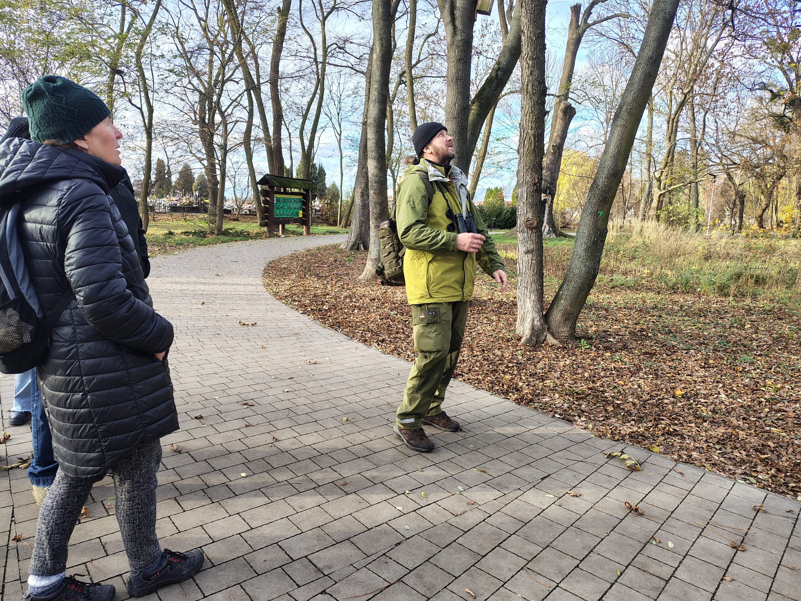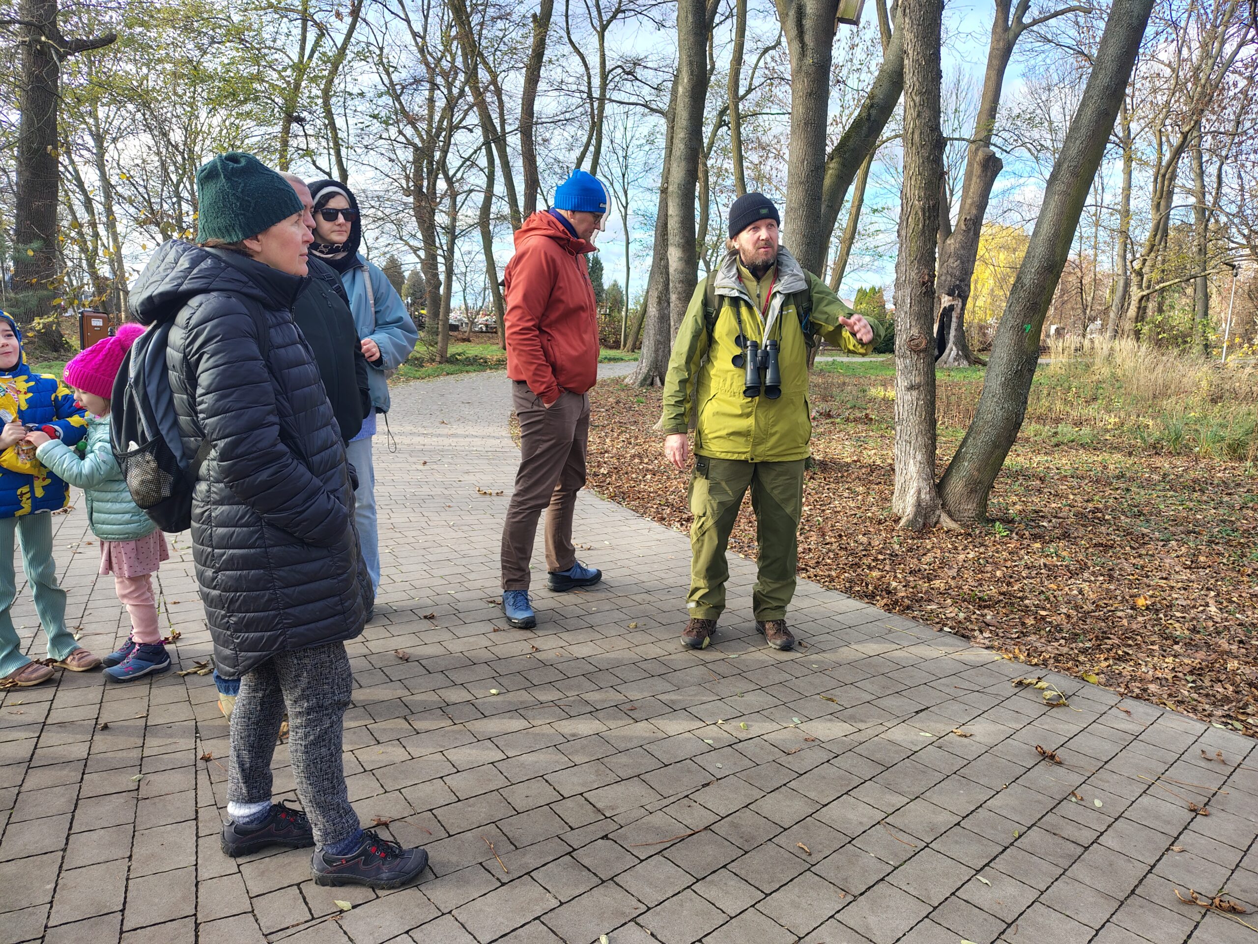 Gościem specjalnym wydarzenia był Sławomir Kasjaniuk, członek Ogólnopolskiego Towarzystwa Ochrony Ptaków i przewodnik kampinoski. Rozpoczęliśmy od „rozgrzewki” w Bibliotece Głównej, podczas której przyrodnik ciekawie opowiadał o ptakach i innych zwierzętach, jakie można spotkać w mieście i parkach miejskich, a także o tych, których na pewno nie spotkamy jesienią. Uczestnicy obejrzeli bogato ilustrowaną prezentację, mieli też okazję do rozpoznawania ptaków na zdjęciach i po nagranych dźwiękach.