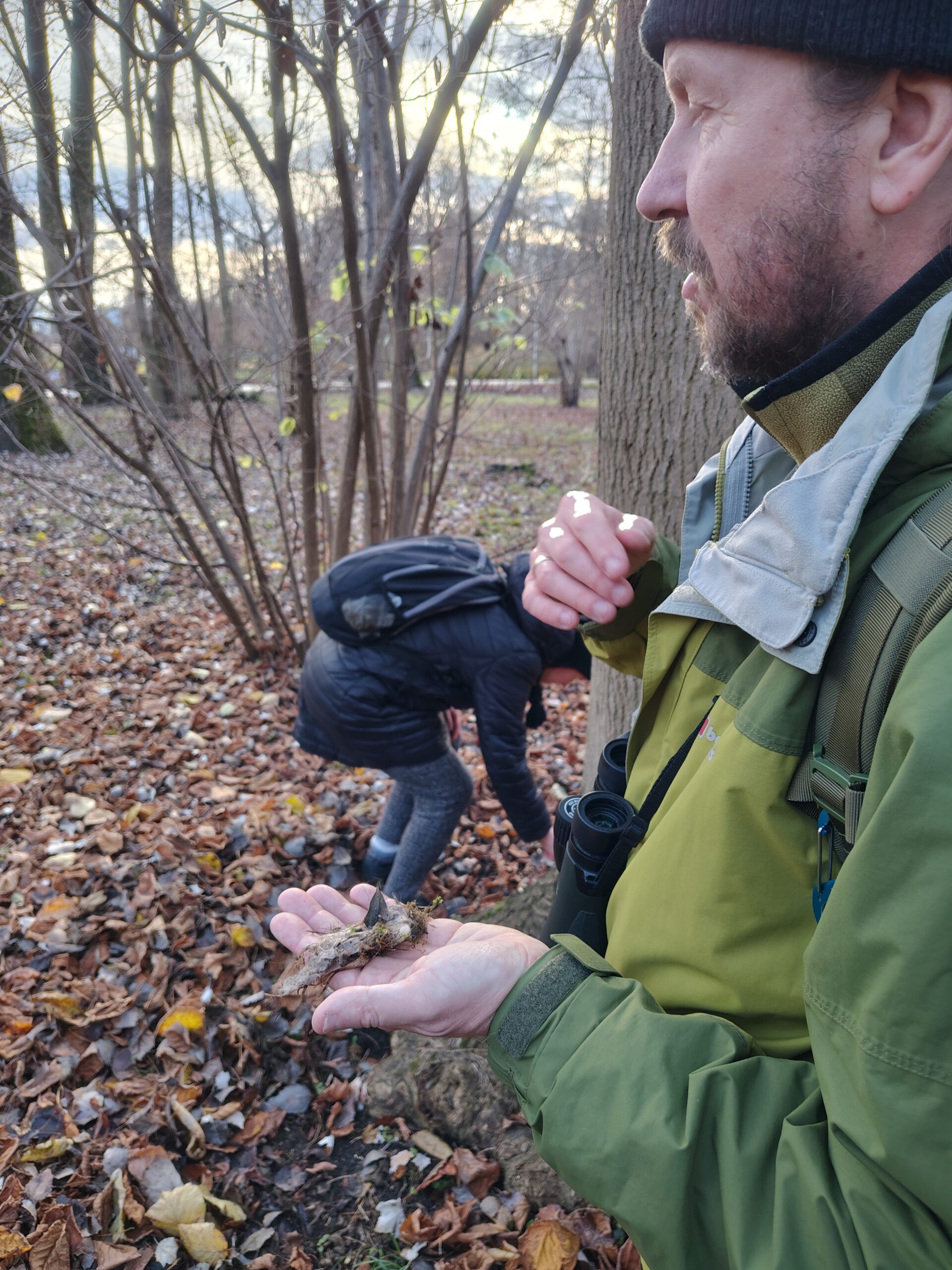 Pan Sławomir cierpliwie odpowiadał na wszystkie pytania uczestników. Było to niezwykłe spotkanie, inne niż poprzednie – tym razem bowiem na spacer wyruszyliśmy za dnia. Przyrodnik bardzo pozytywnie ocenił Park Ołtarzewski, podkreślając, że jest to miejsce przyjazne zwierzętom, m.in. dzięki pozostawieniu naturalnych, nietkniętych ludzką ręką zakątków. Zachęcał także do regularnych obserwacji przyrody.