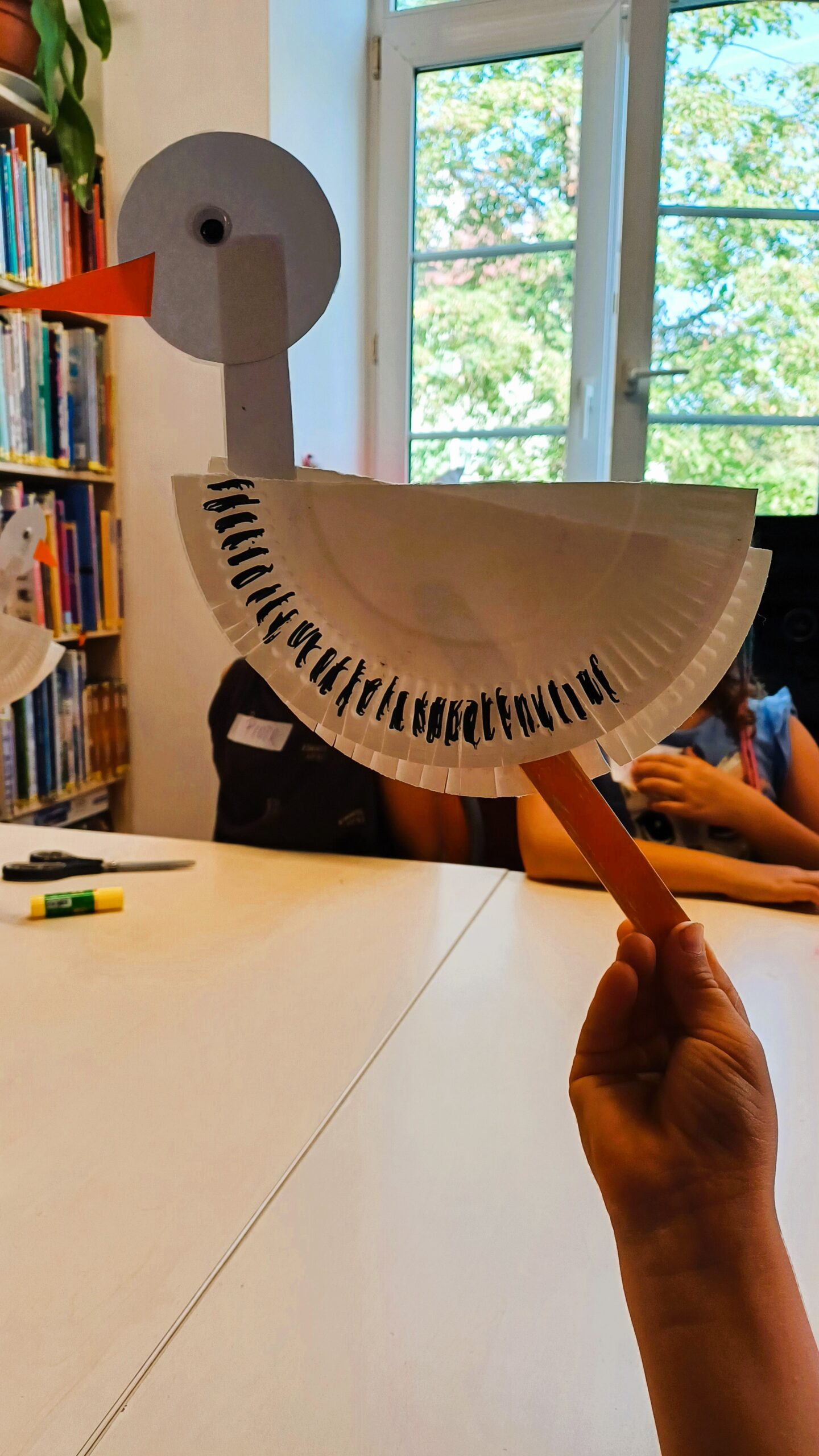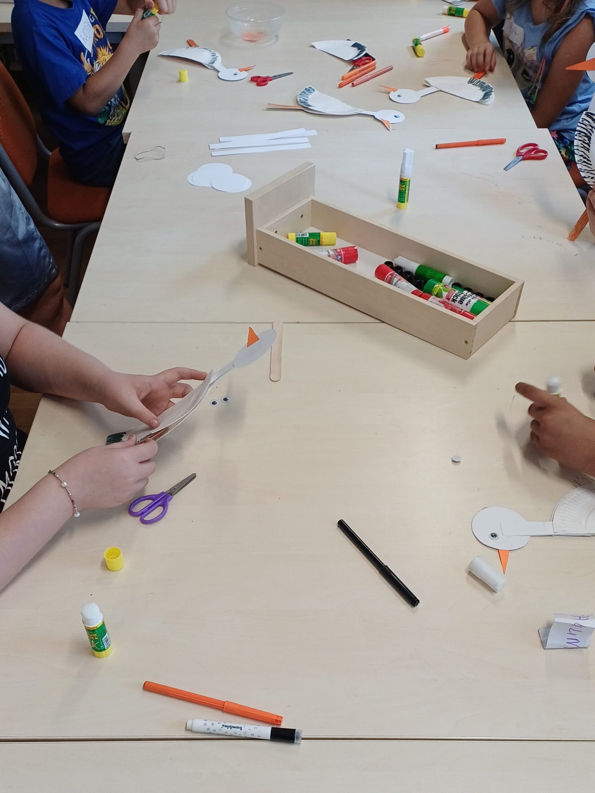 Ale jeszcze podczas pierwszych z nich żegnaliśmy lato…i odlatujące już z naszego kraju bociany! Uczestnicy poznali historię lotu do Afryki odważnego boćka Łobuza, bohatera książki Antoniego Ferdynanda Ossendowskiego. Na koniec każdy mógł wykonać swojego bociana z papieru.