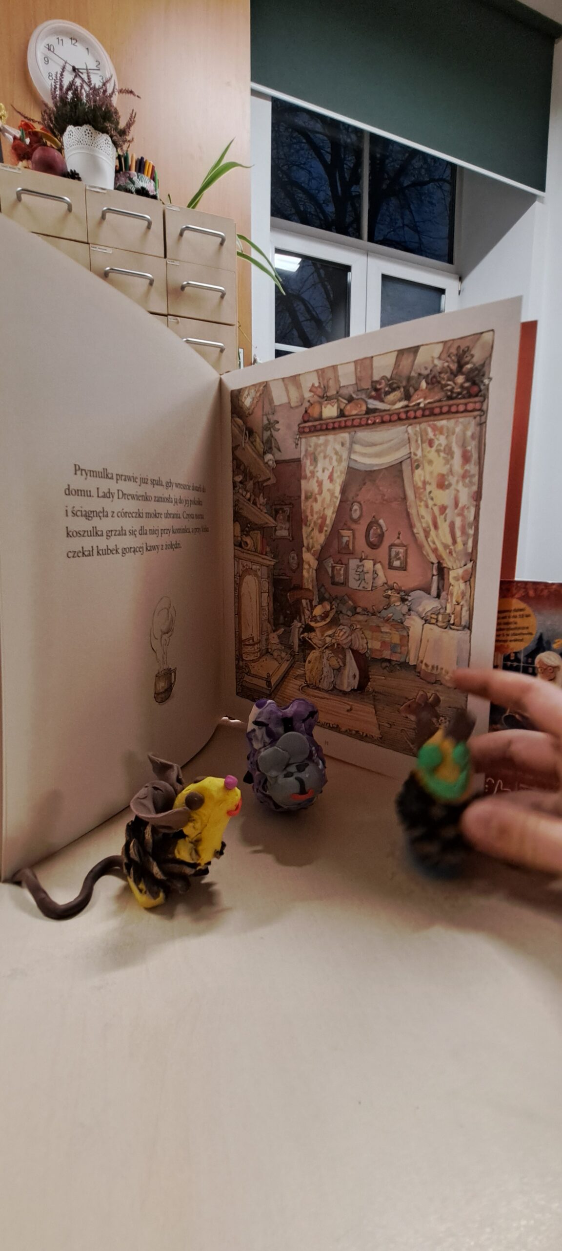 Ostatnie spotkanie upłynęło nam na spotkaniu z mieszkańcami Jeżynowego Grodu, bohaterami opowieści autorstwa Jill Barklem. Następnie dzieci tworzyły ich sympatyczne podobizny z szyszek i plasteliny.